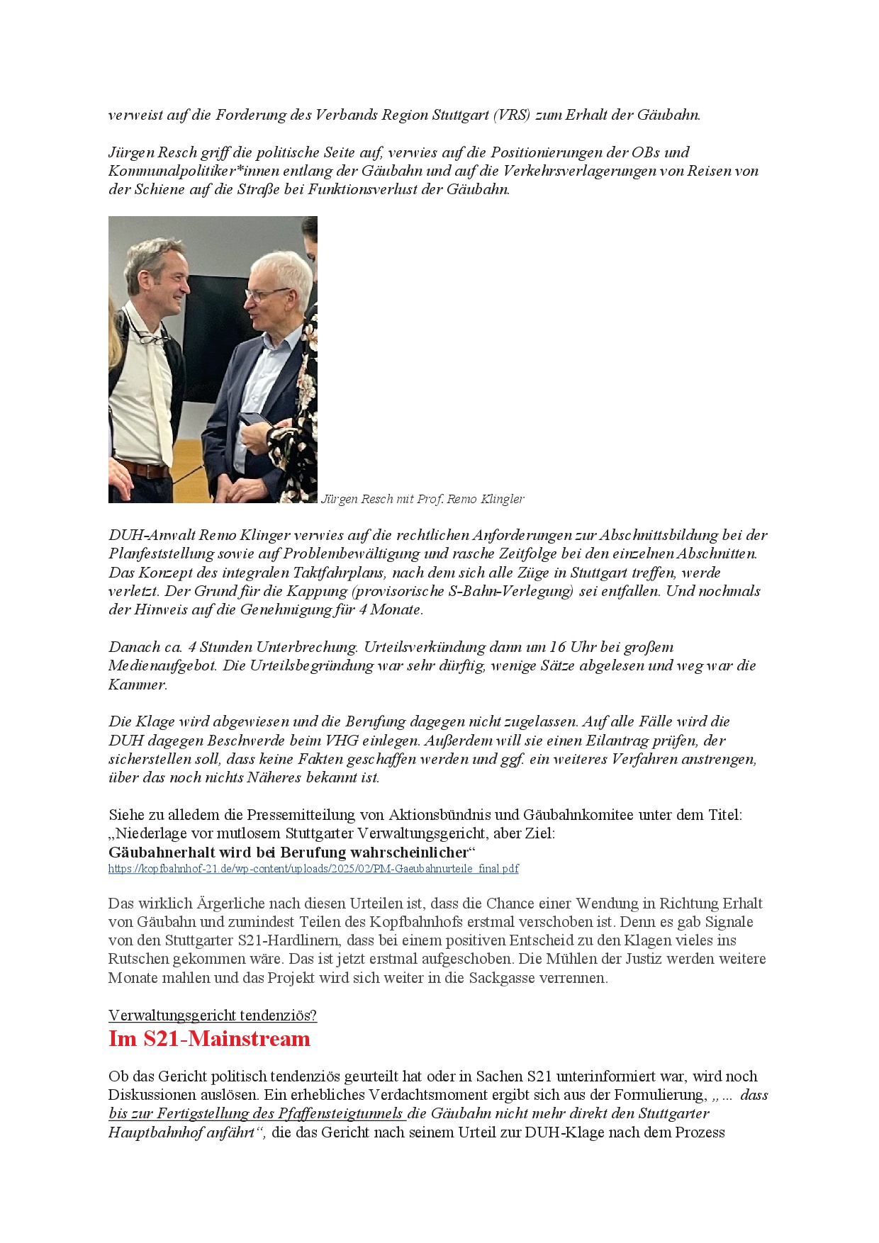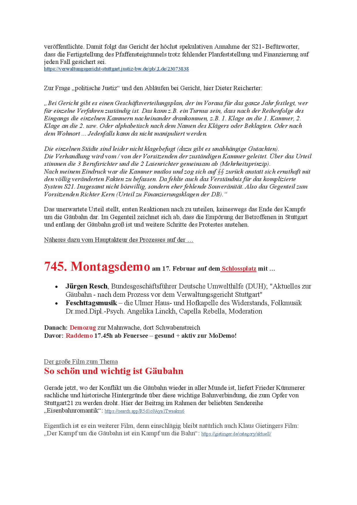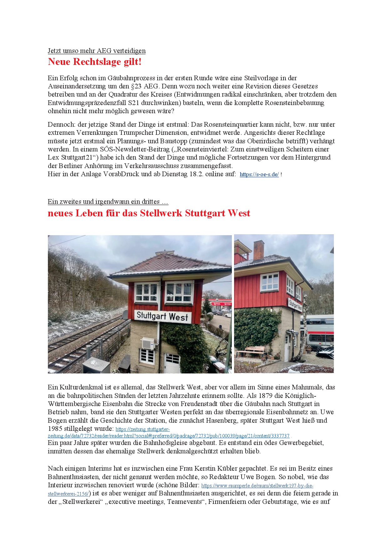 newS21letter (Werners Rundmail) vom 16.2.25 17. Feb.. 2025 (hier der NewS21letter als pdf-Datei) (und hier der darin erwähnte SÖS-Beitrag zur AEG-Anhörung)