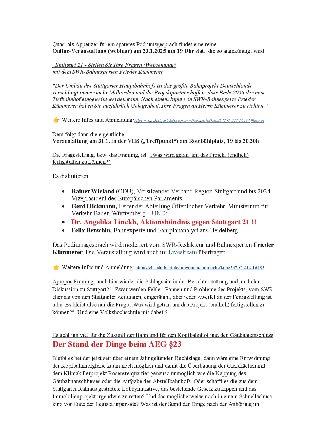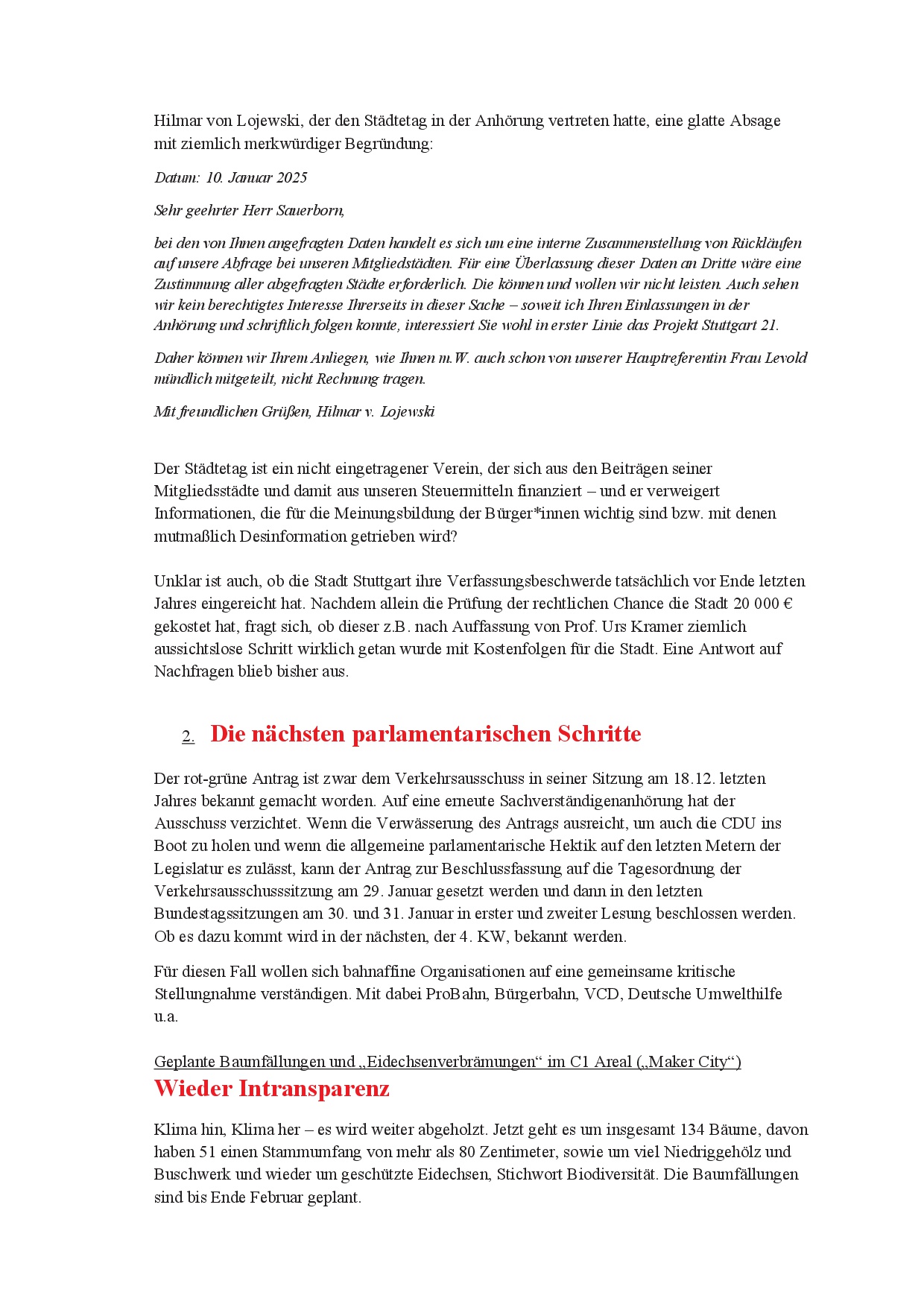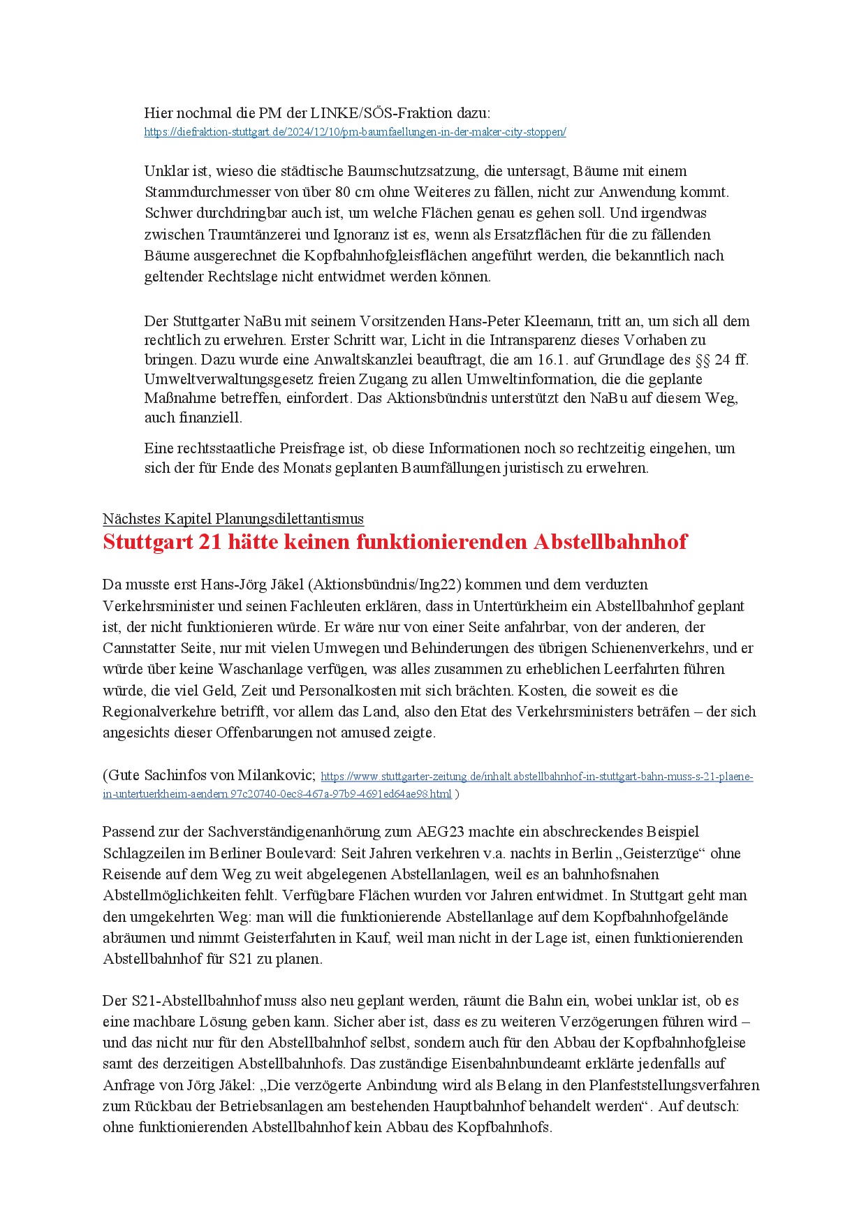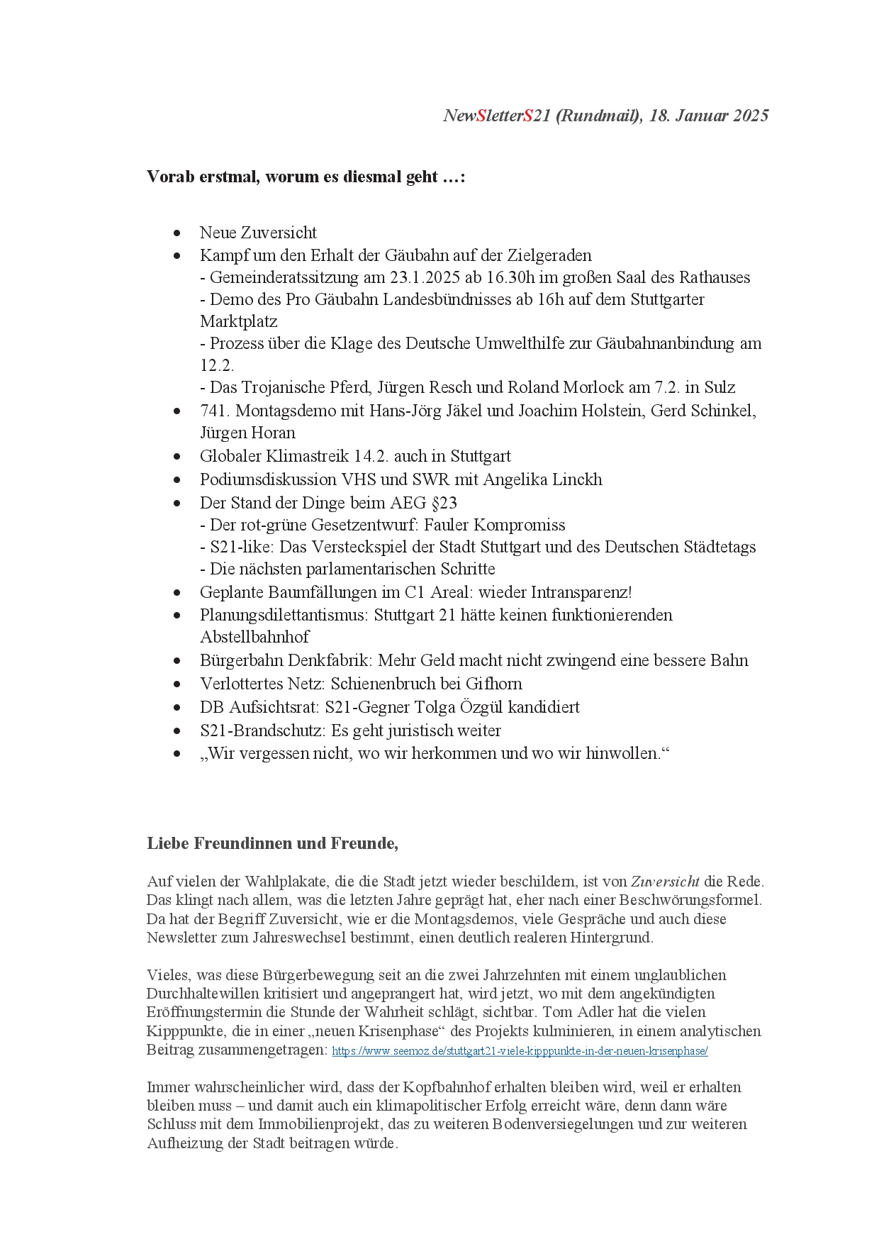 newS21letter (Werners Rundmail) vom 18.1.25 20. Jan.. 2025 (hier der NewS21letter als pdf-Datei) (und hier die Änderungen des Rot-Grünen Antrags)