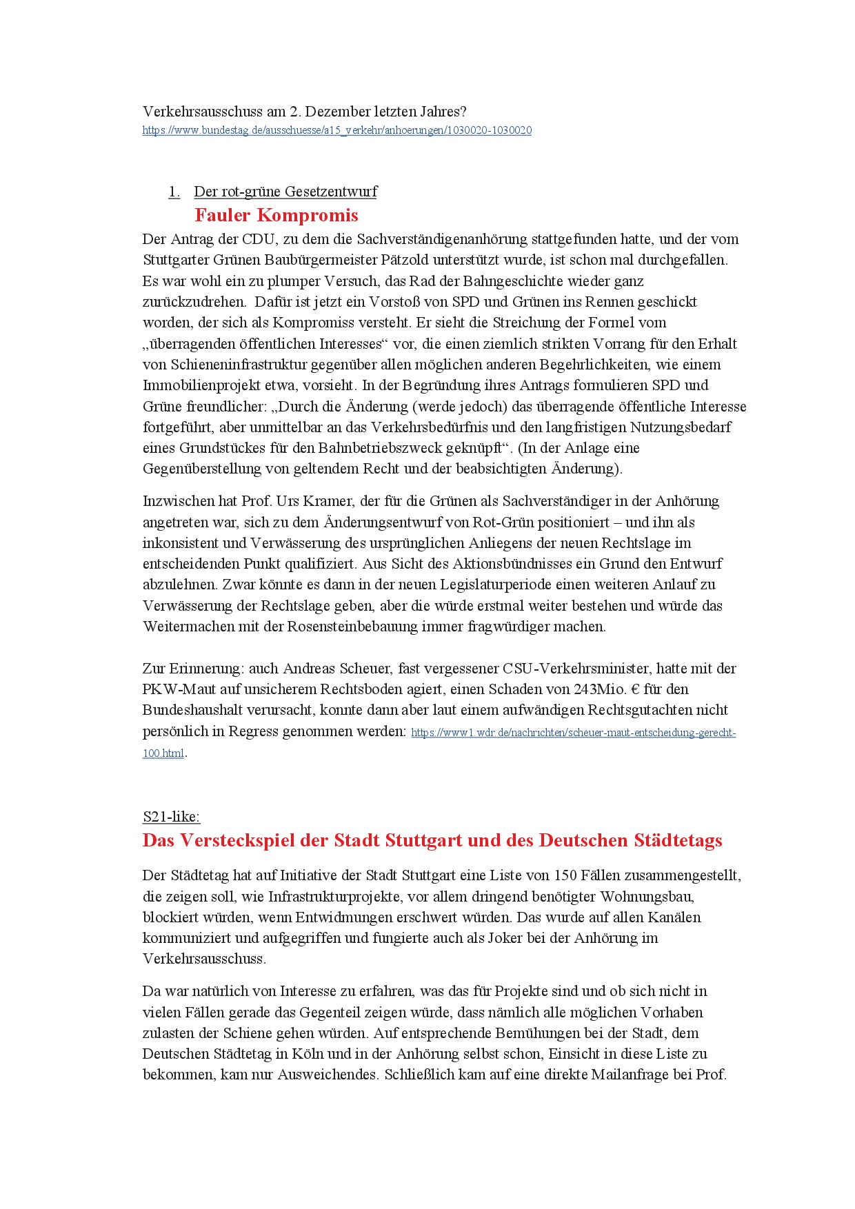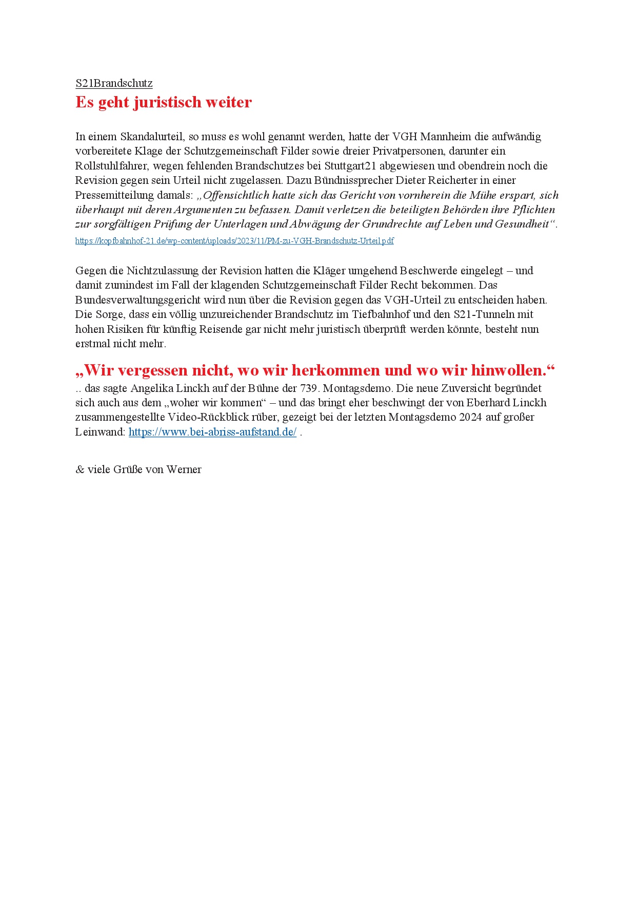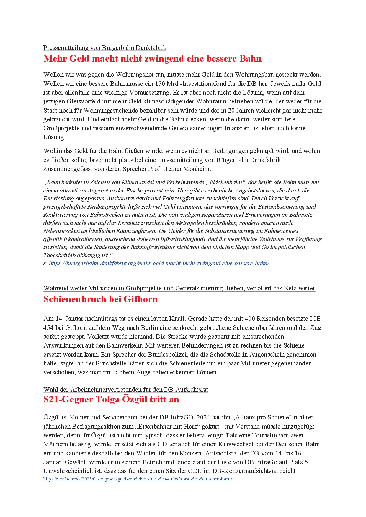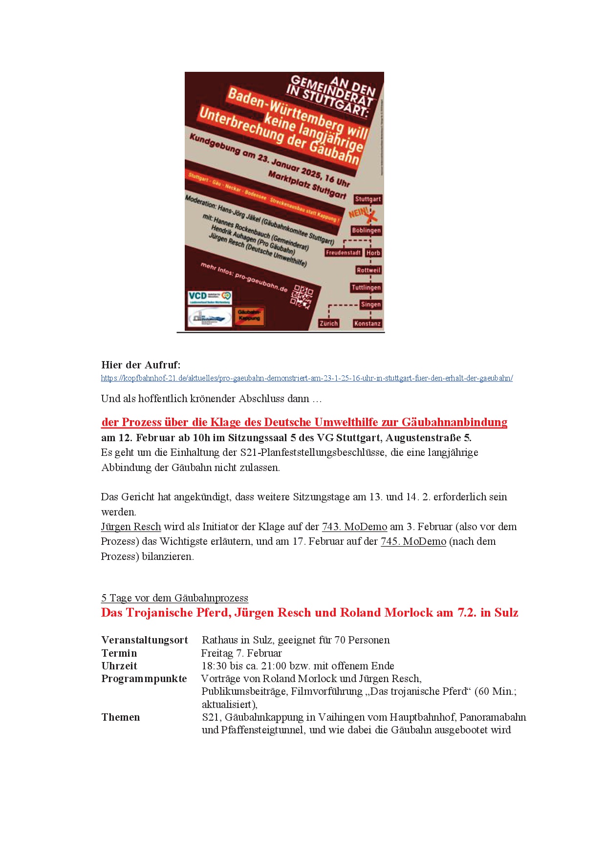 newS21letter (Werners Rundmail) vom 18.1.25 20. Jan.. 2025 (hier der NewS21letter als pdf-Datei) (und hier die Änderungen des Rot-Grünen Antrags)