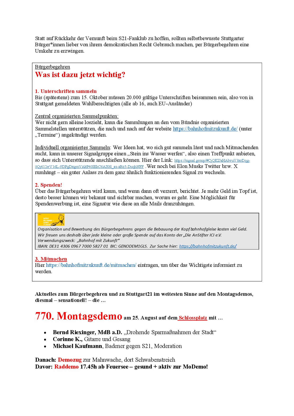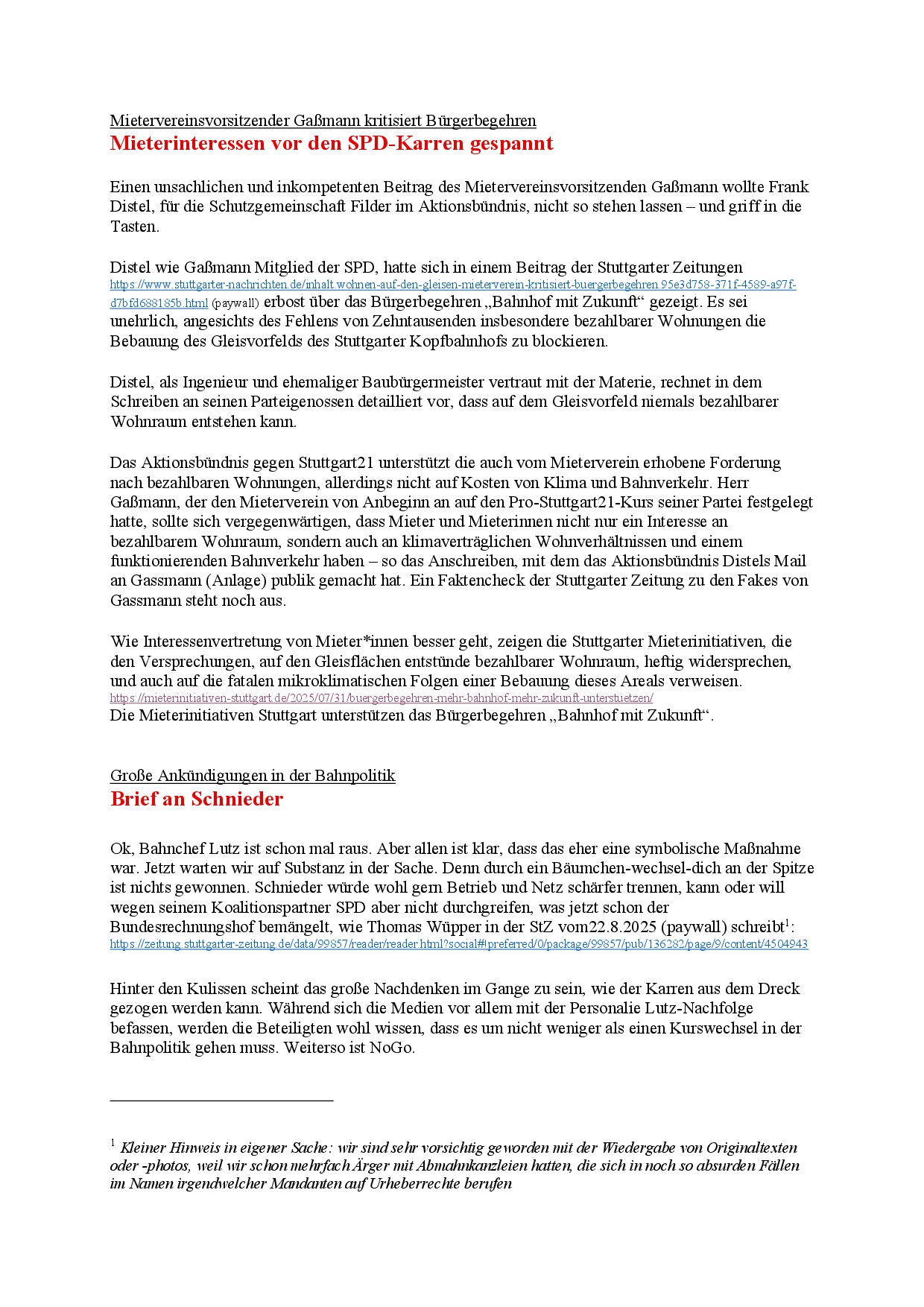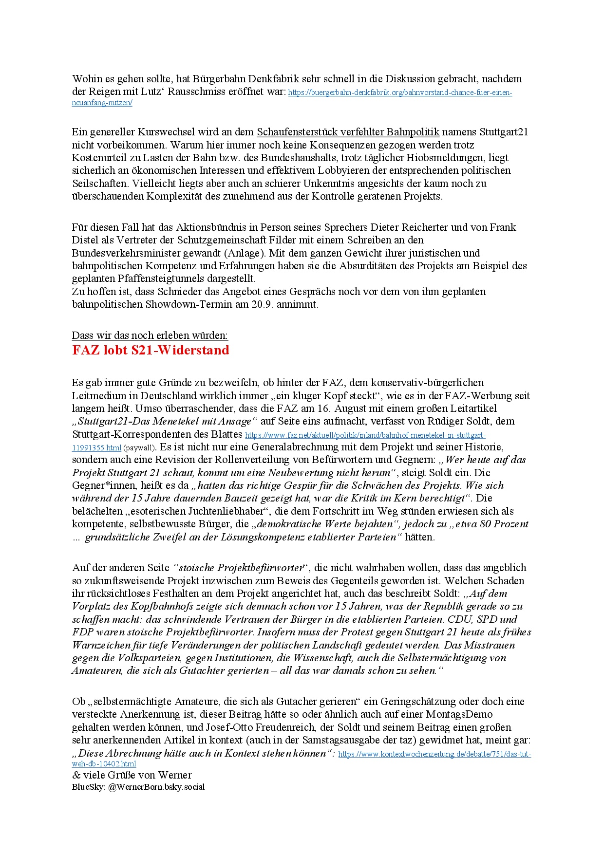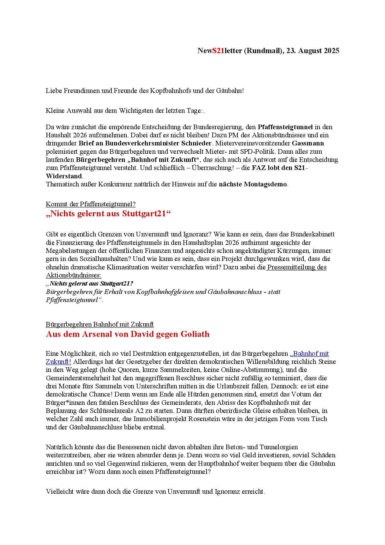 newS21letter (Werners Rundmail) vom 23.8.25 3. Sep.. 2025 (hier der NewS21letter als pdf-Datei) (Pressemitteilung „Nichts gelernt aus Stuttgart 21?“)