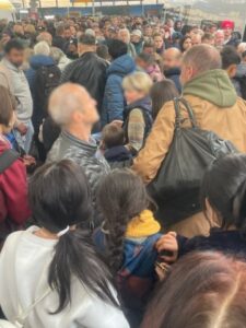 Als unheilvollen Ausblick auf Stuttgart21 bezeichnete Bündnissprecher Martin Poguntke die drangvolle Enge am vergangenen Wochenende auf verschiedenen Gleisen des Stuttgarter Hauptbahnhofs. Während der Hauptreisezeit gab es für hunderte Menschen kein Vorwärts und Zurück mehr. So mussten gegen 15 h an den Gleisen 7 und 8 viele Bahnkund*innen an die 15 Minuten stehend warten, bis sich der Stau auflöste, sie den Bahnsteig verlassen oder in ihre Züge einsteigen konnten. „Einen Ansturm wie am Sonntag, als der VfB spielte, noch Wasenzeit war und die Rückreisewelle der Brückentage rollte, muss ein Hauptstadtbahnhof verkraften können. Im bestehenden Kopfbahnhof ging es gerade noch mal gut – im Tiefbahnhof hätte es zu einer gefährlichen Panik kommen können“, so Poguntke weiter. Erschwerend kam hinzu, dass die Trittbrettautomatik des Regiozugs an Gleis 7 nicht funktionierte und Rollstuhlfahrenden den selbständigen Ein- und Ausstieg verunmöglichte.